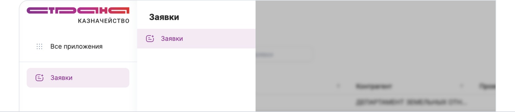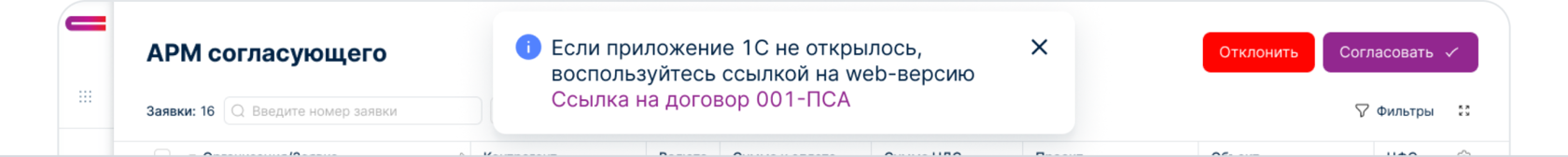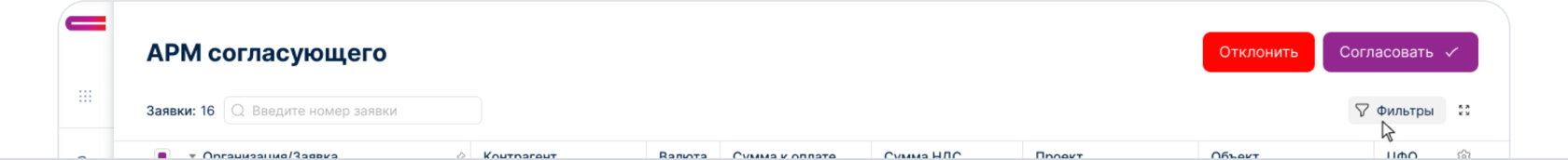 Пользователь входит в меню Заявки слева на панели выбирает АРМ согласующего