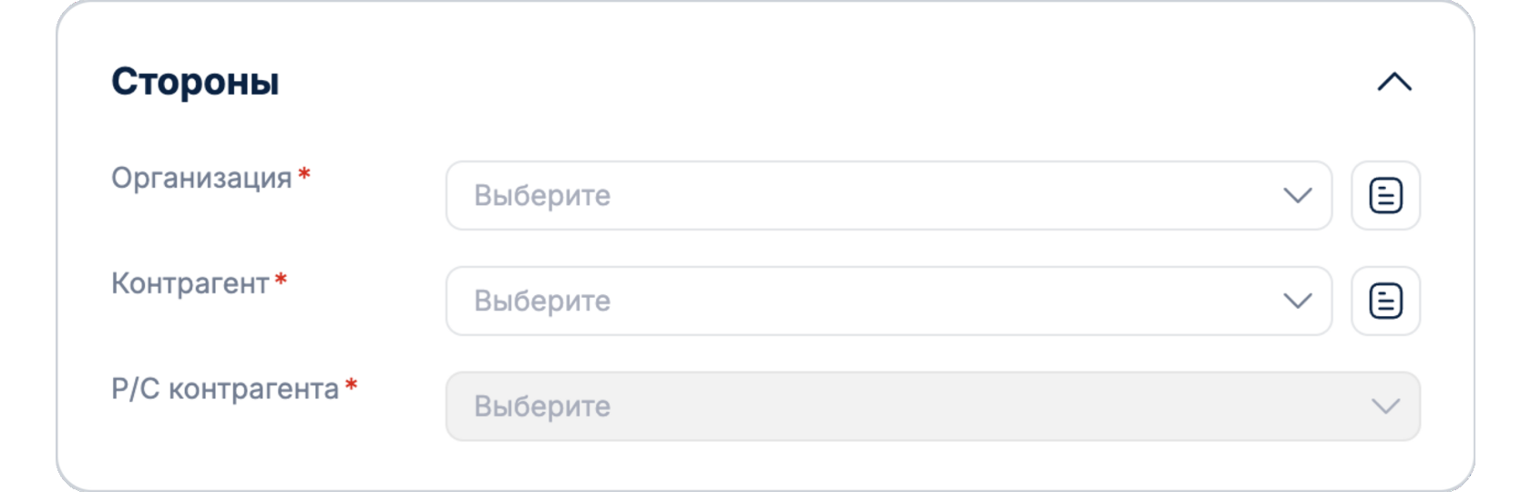 Нужно выбрать договор, на основании которого будет проходить оплата