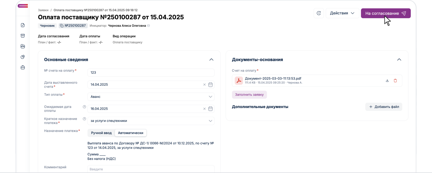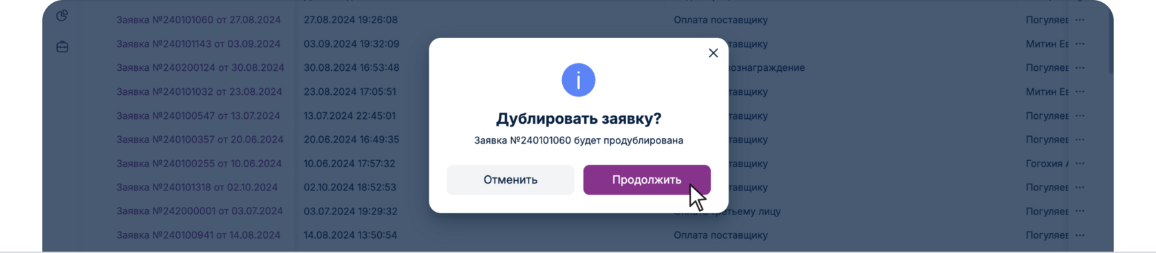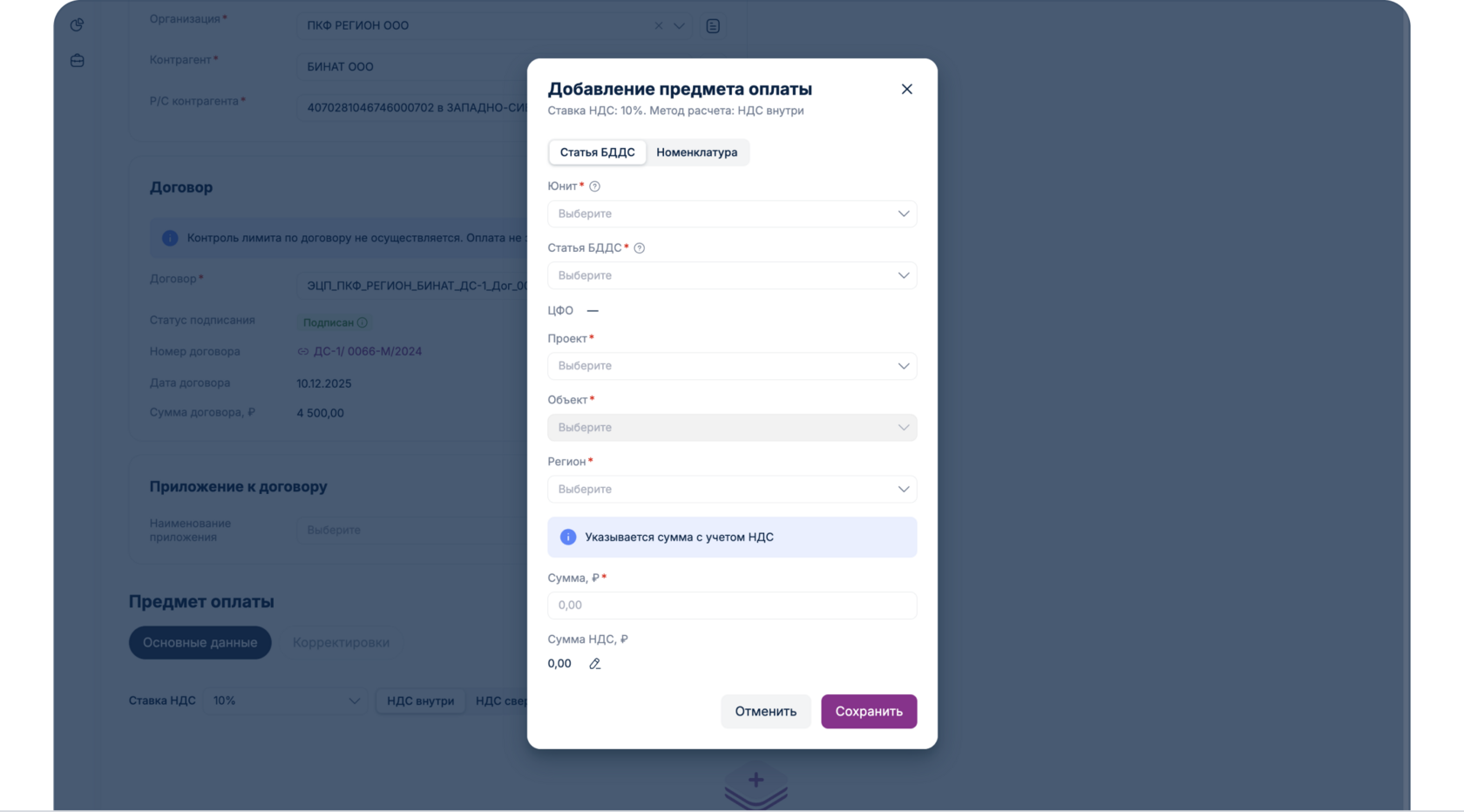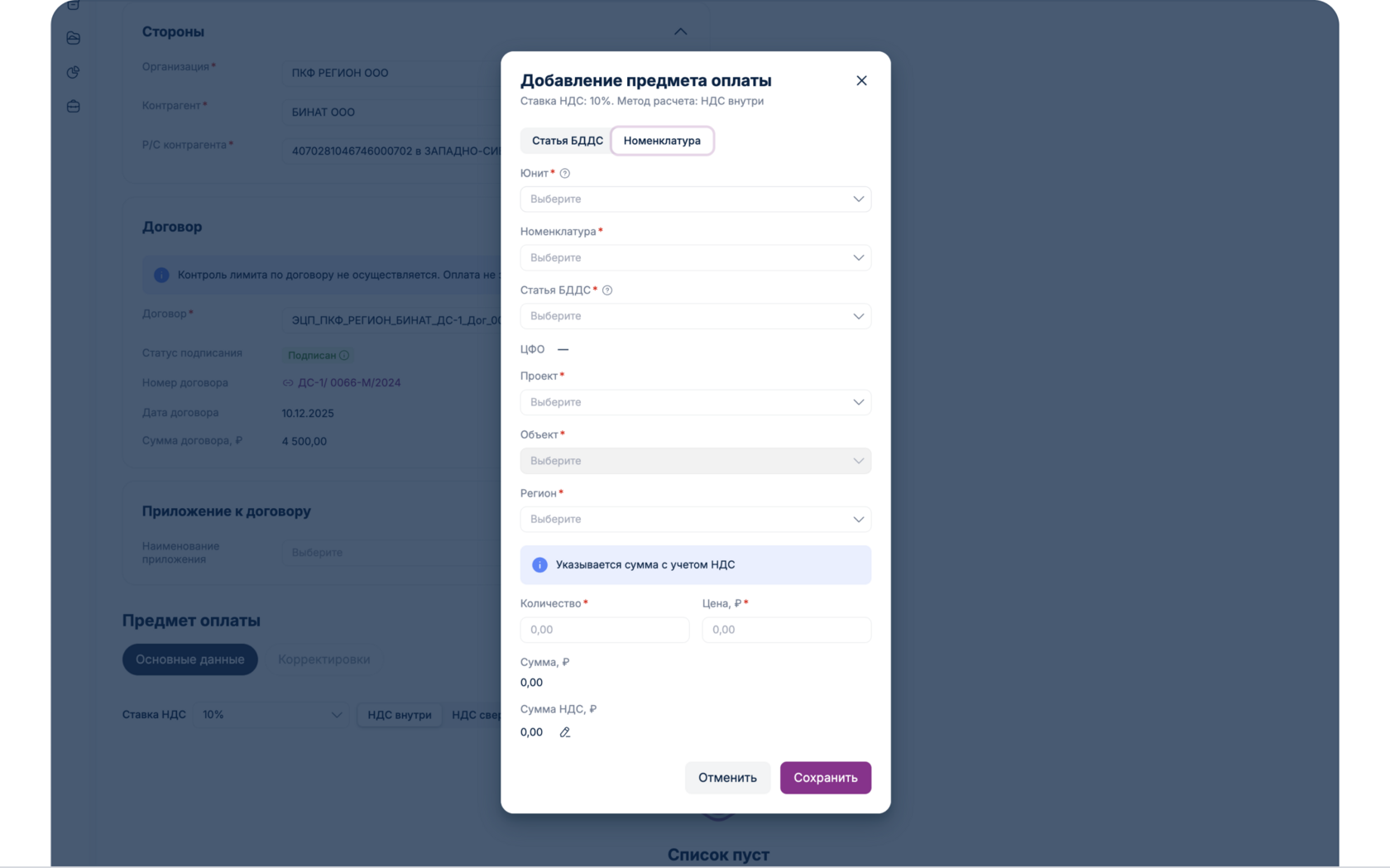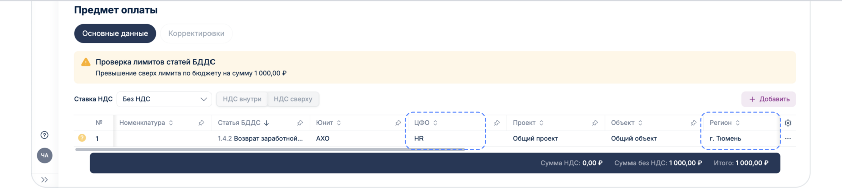 Если лимиты превышены отобразится соответствующее уведомление: «Превышен лимит по бюджету». При превышении лимита заявка отправится на согласование Бюджетному контролеру, где он непосредственно может как изменить статью БДДС, скорректировать бюджет, так и отклонить заявку в связи с неверно отраженным Юнитом в заявке. После создания корректировки Бюджетным контролером, заявка переходит на согласование «Ответственному за Юнит».
