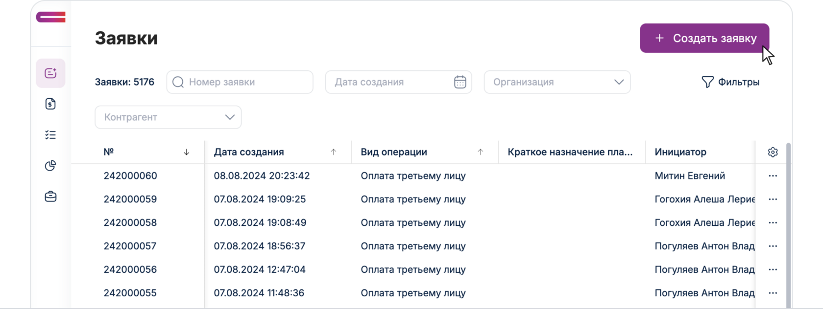 Так же в программе предусмотрена возможность дублирования заявки.