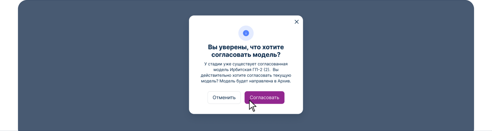 По кнопке «Перейти к модели» можно просмотреть ранее согласованную модель.