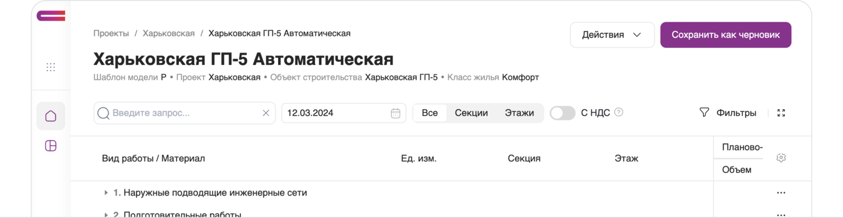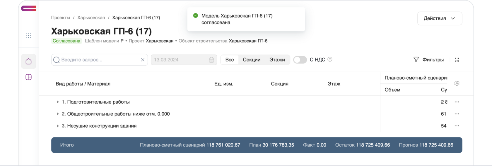 Сохранение модели в черновик это этап предшествующий этапу согласования модели. Позволяет зафиксировать значения в модели на выбранную дату.