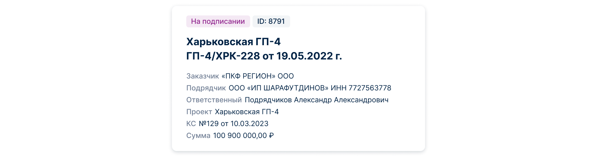 После согласования подрядчиком и бухгалтерией акт переходит в статус На подписании