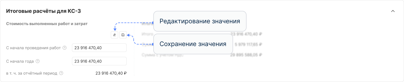 В этом блоке сотруднику ПТО необходимо проверить Итоговые расчёты для КС-3, чтобы система автоматически сформировала корректные данные в КС-3.