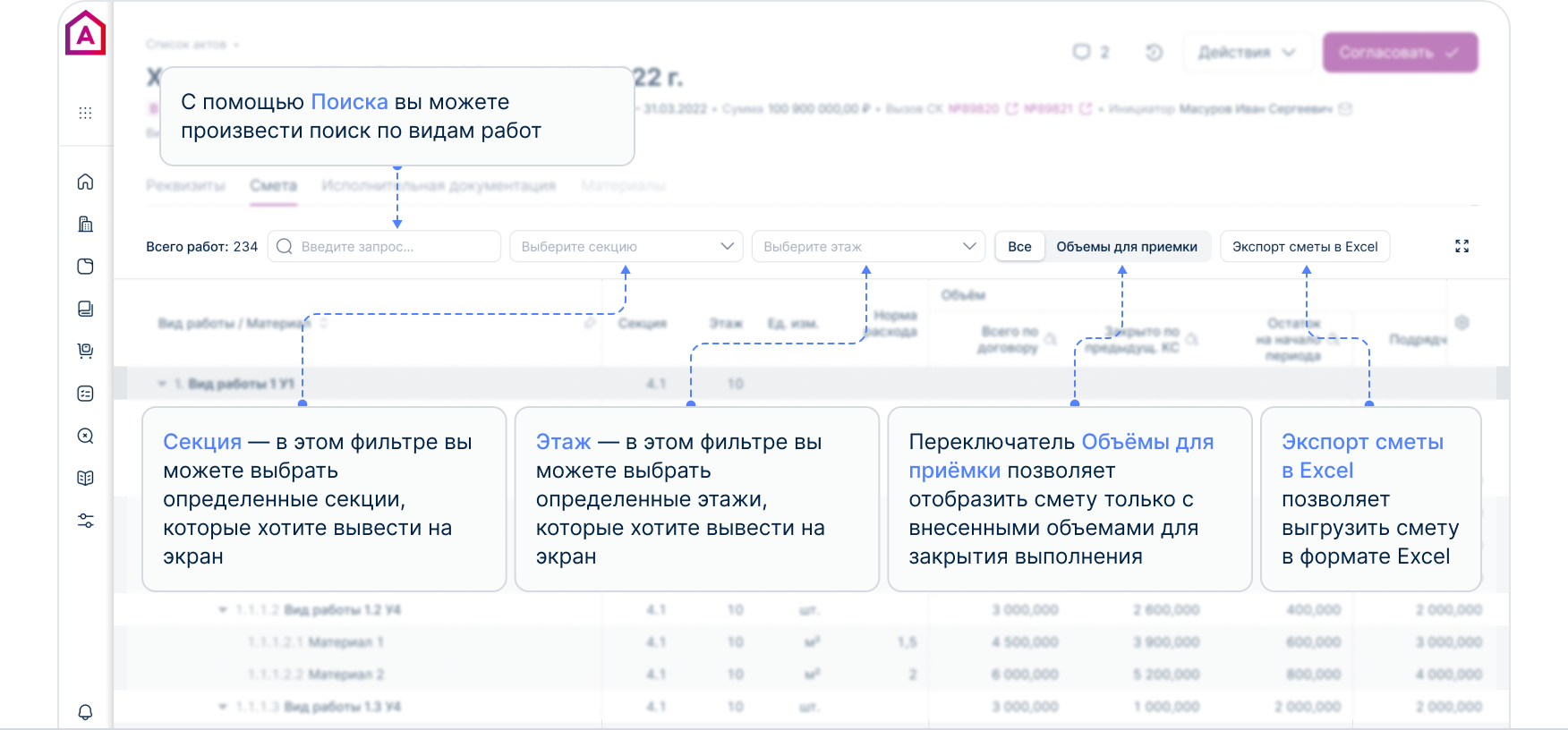 Действие Согласовать означает, что объемы верны и корректны. После согласования акт уходит сотрудникам бухгалтерии в статус Расчёт удержаний