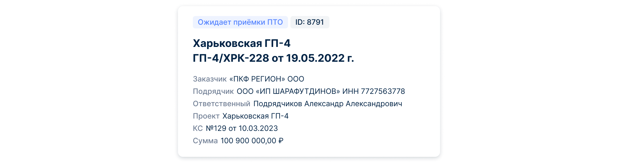 Ожидает приемки ПТО — такой статус означает, что данный акт пришёл вам на проверку от подрядчика
