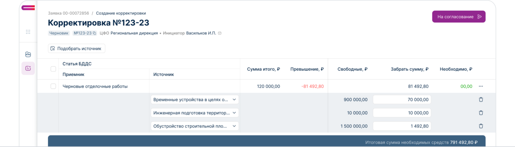 Сделать корректировку бюджета необходимо для того, чтобы взять бюджет с другой статьи БДДС