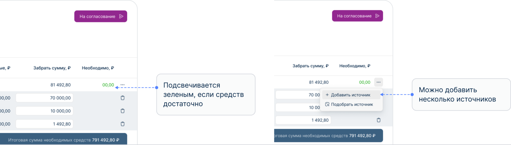 При превышении лимита по договору у вас появится уведомление с суммой превышения. В данном случае вы не сможете отправить заявку на согласование. Проверьте верный ли договор выбран, если договор выбран верный, то необходимо обратиться к руководителю для того что бы решить проблему с превышением лимита по договору, заключить доп. соглашение