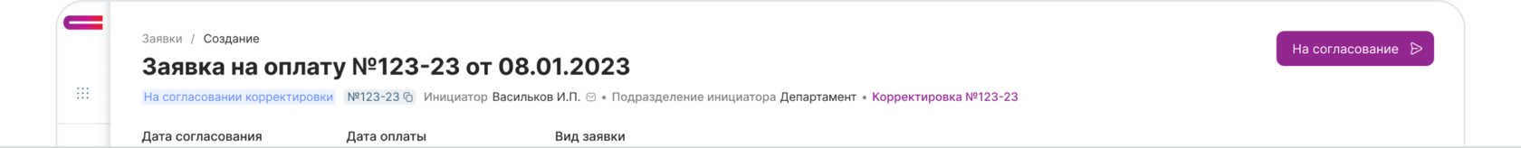 После того как согласуют корректировку автоматически запустится процесс согласования заявки на оплату. Пока корректировку не согласуют процесс согласования заявки не запустится