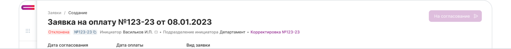 Если корректировку не согласуют, у заявки поменяется статус на «Отклонена»