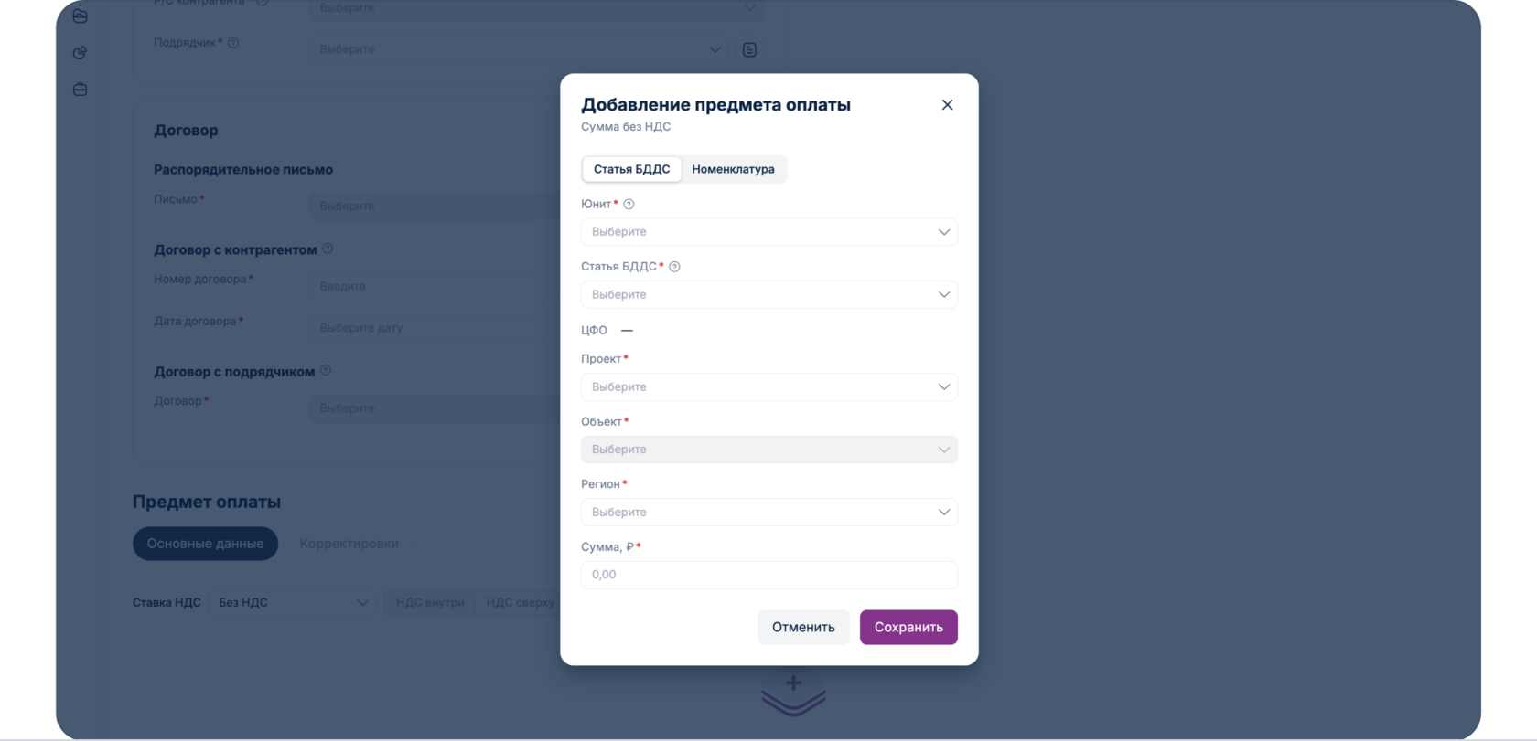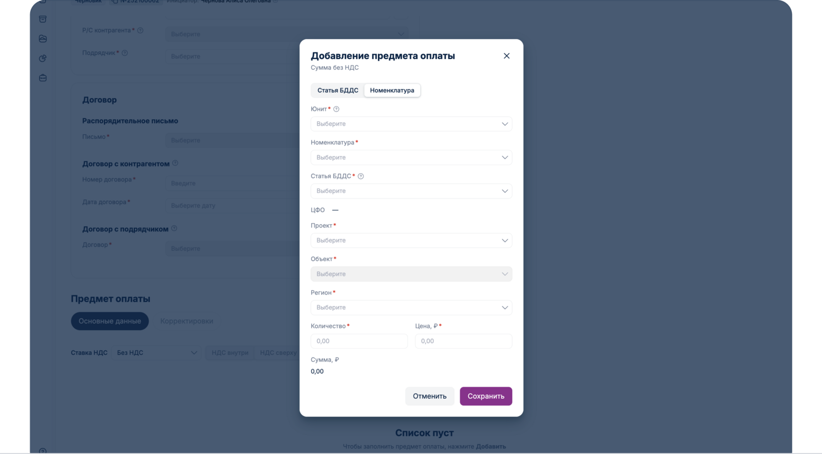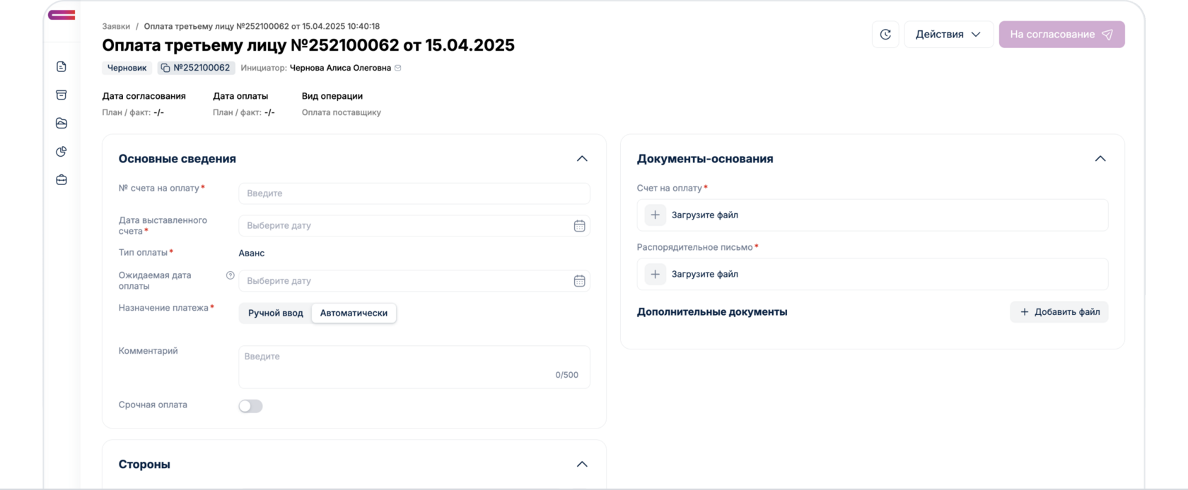 Для этого необходимо справа в списке нажать на кнопку в виде трех точек, и после этого нажать «Дублировать», высветиться окно в котором нужно нажать «Продолжить». После этого у вас создастся новая заявка, необходимо будет только до заполнить номер и дату счета, добавить номенклатуру и добавить файл счета.