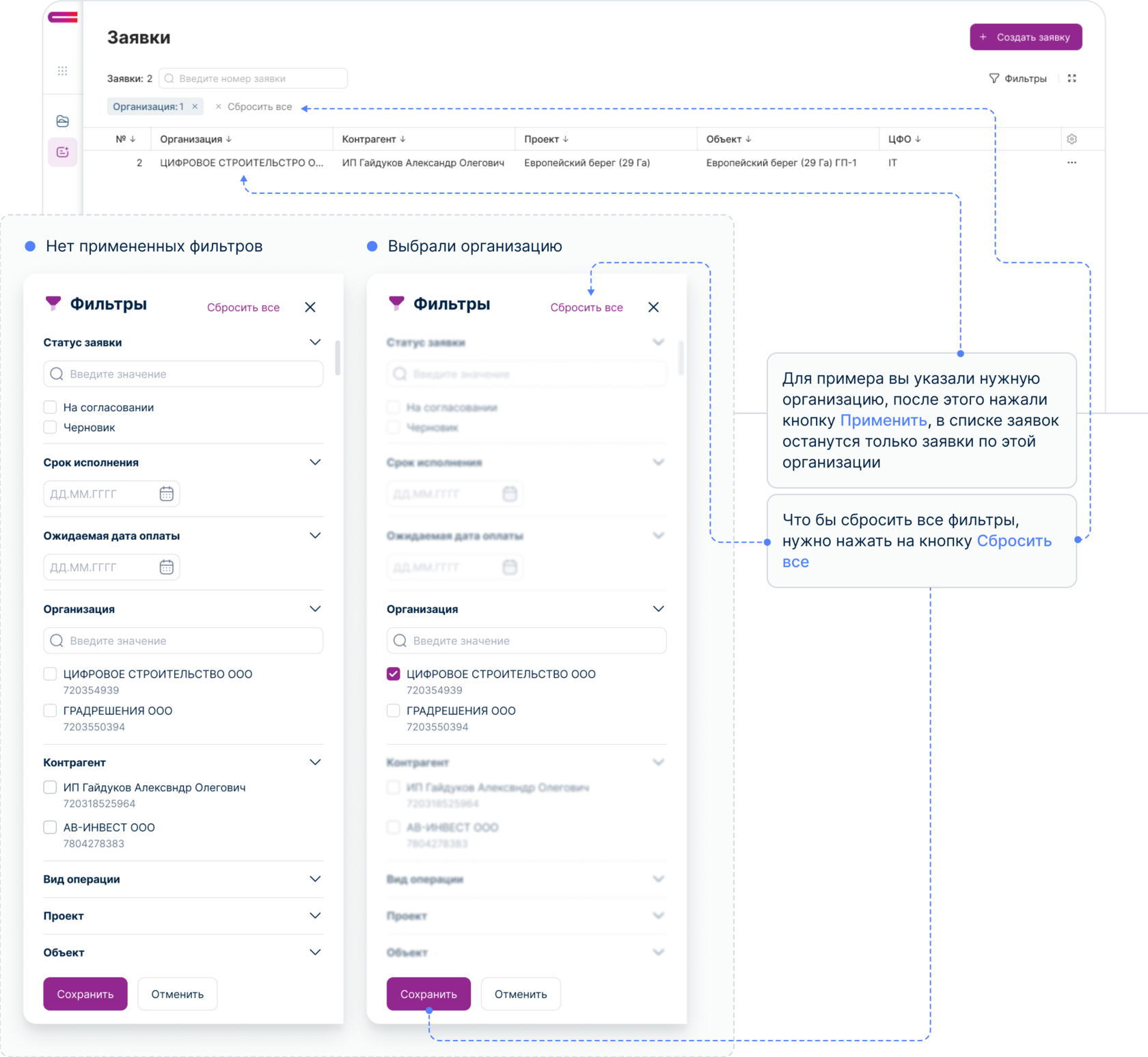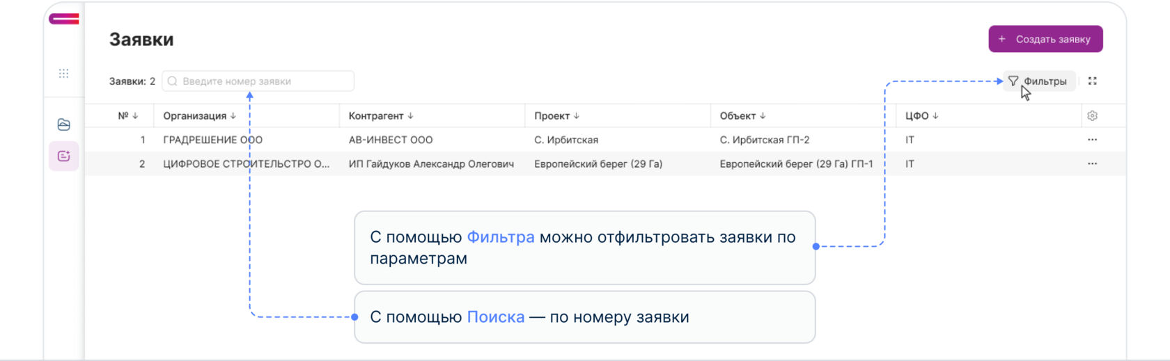 У вас откроется список фильтров в котором вы можете указать нужные для вас параметры и отфильтровать список заявок по ним