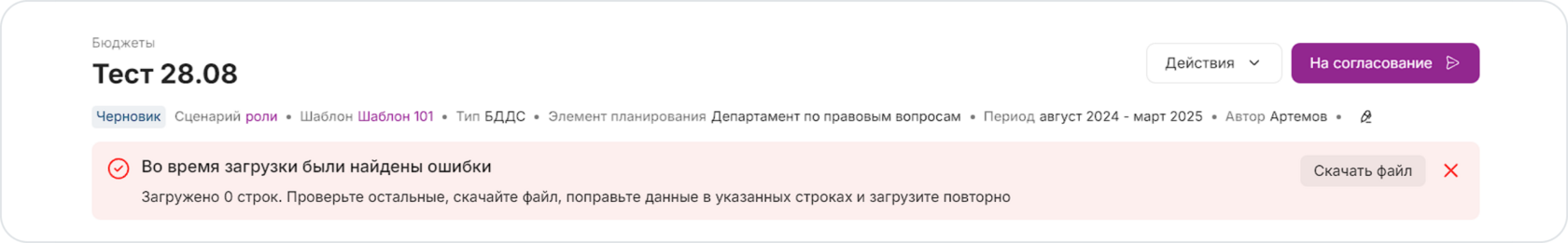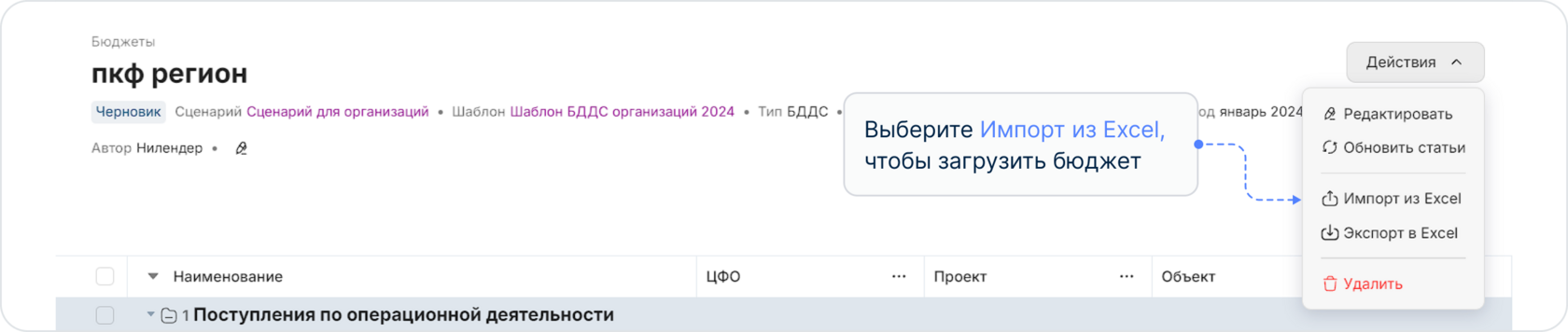 Импорт бюджета