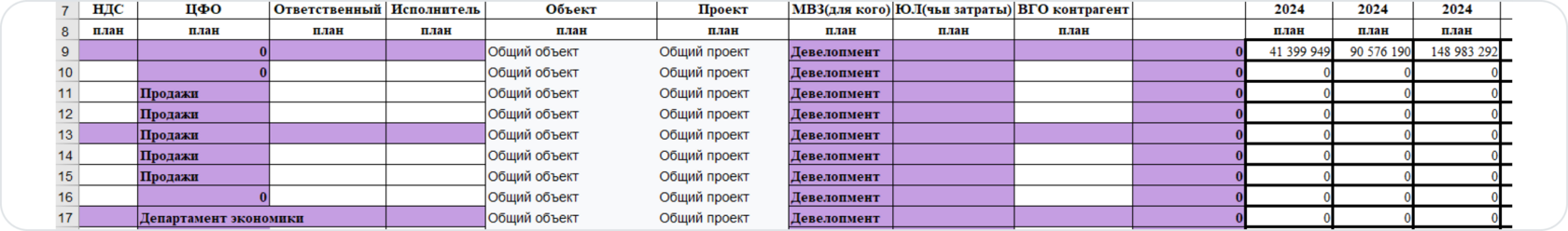 Заполните колонки необходимыми аналитиками и занесите необходимые суммы в разрезе периодов