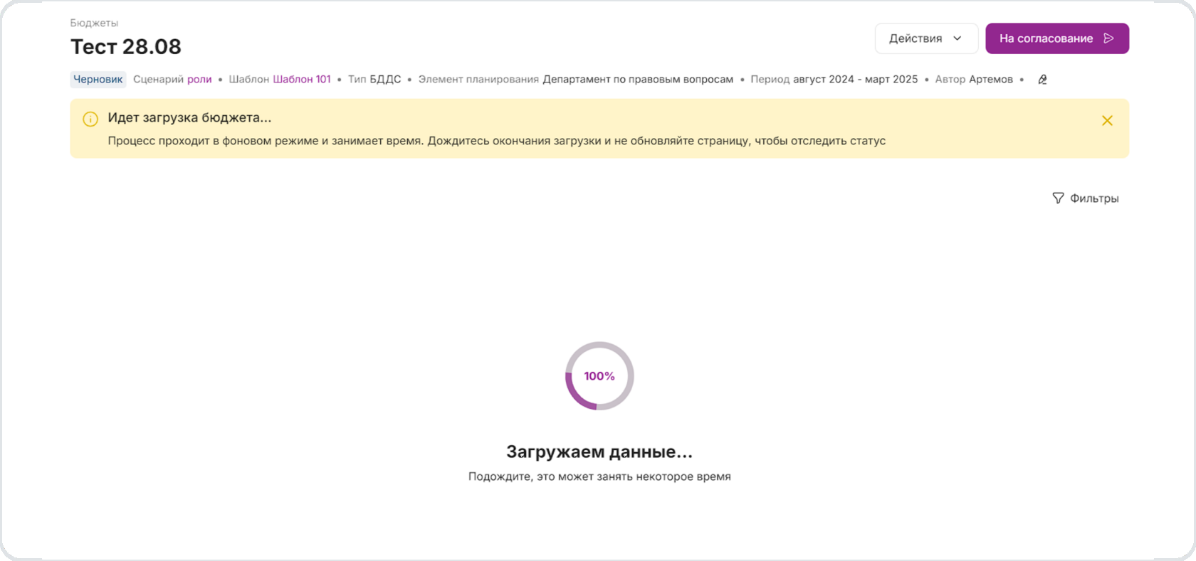 Загрузку бюджета можно осуществлять в созданный в системе бюджет