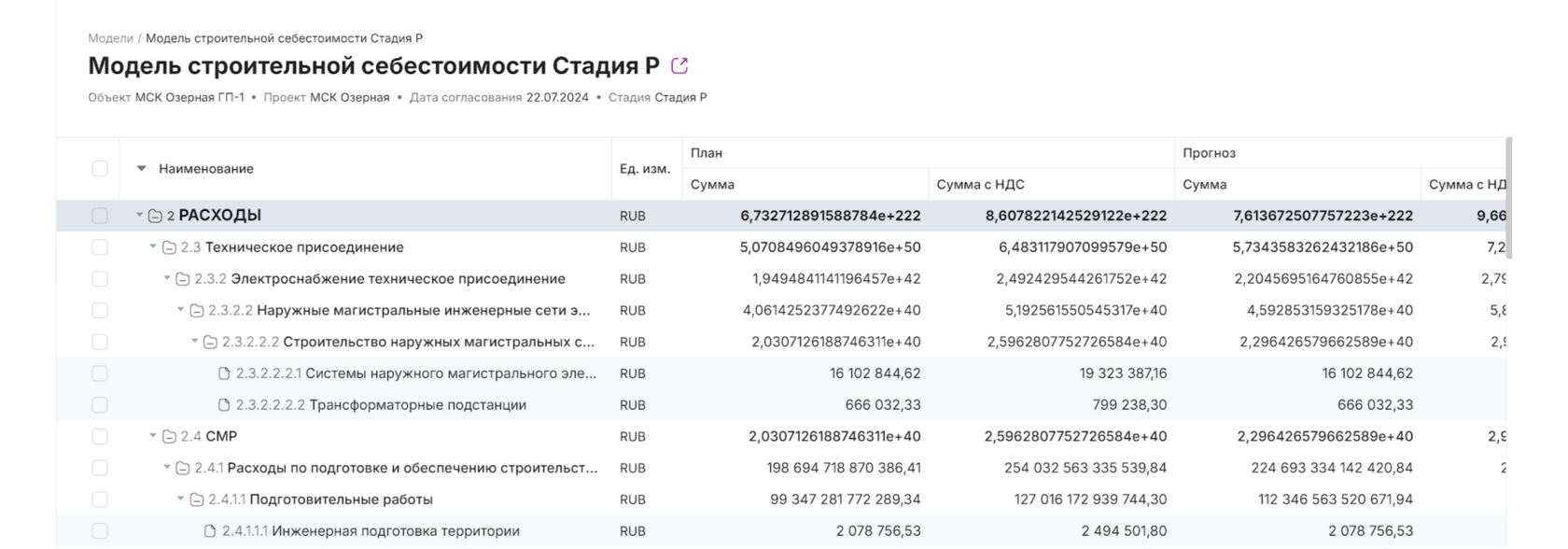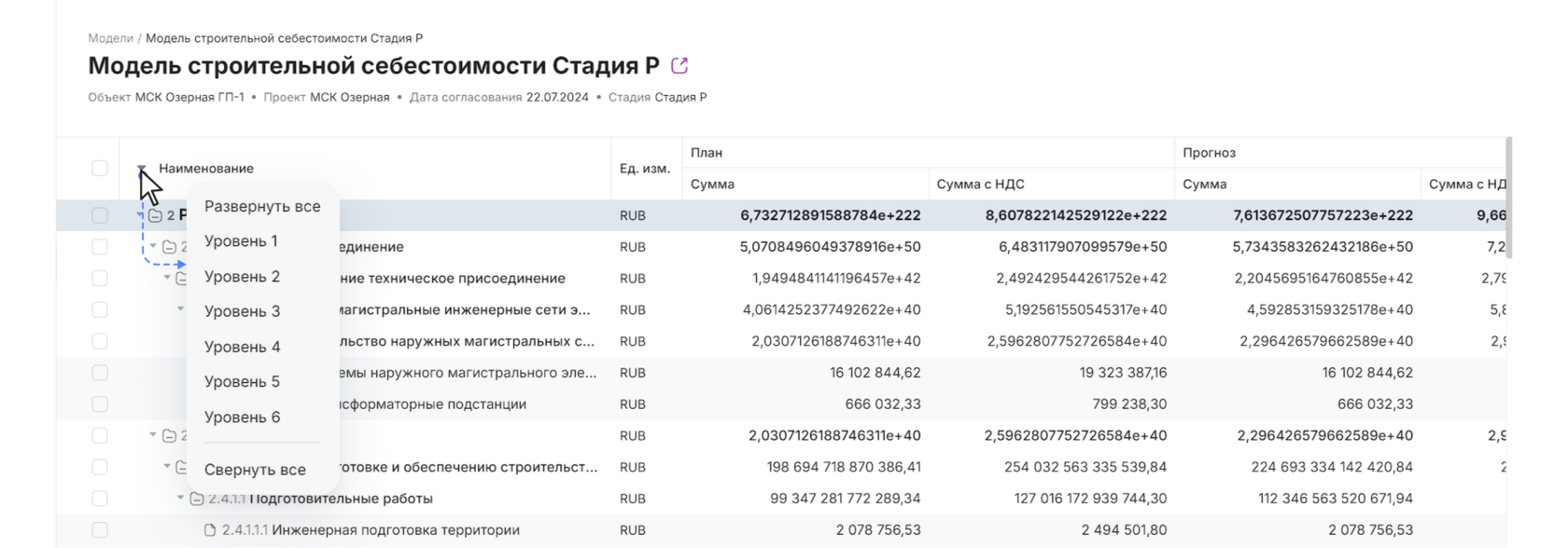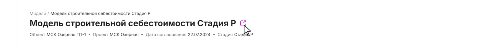 в заголовке отчета, чтобы перейти в систему Моделирование строительной себестоимости