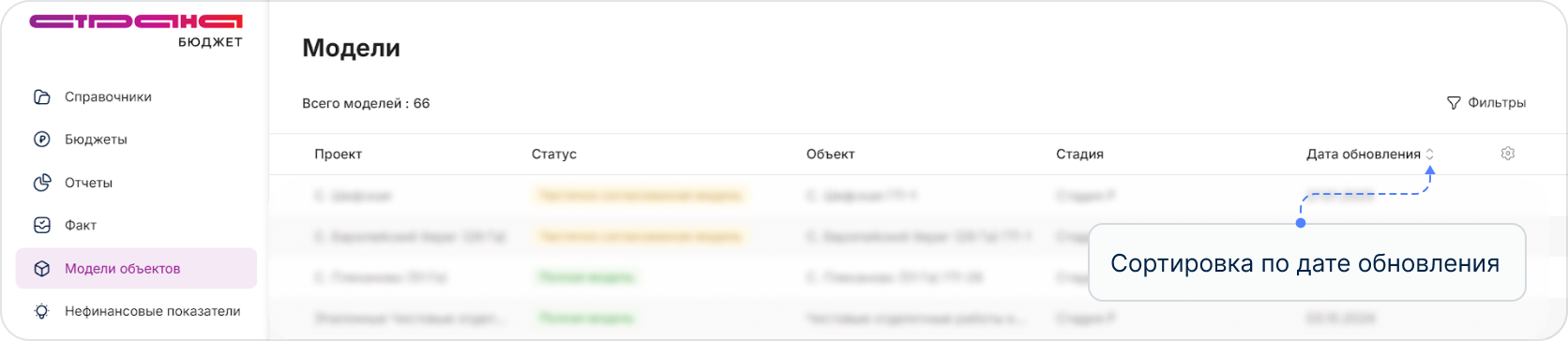 Для фильтрации моделей объекта, нажмите кнопку