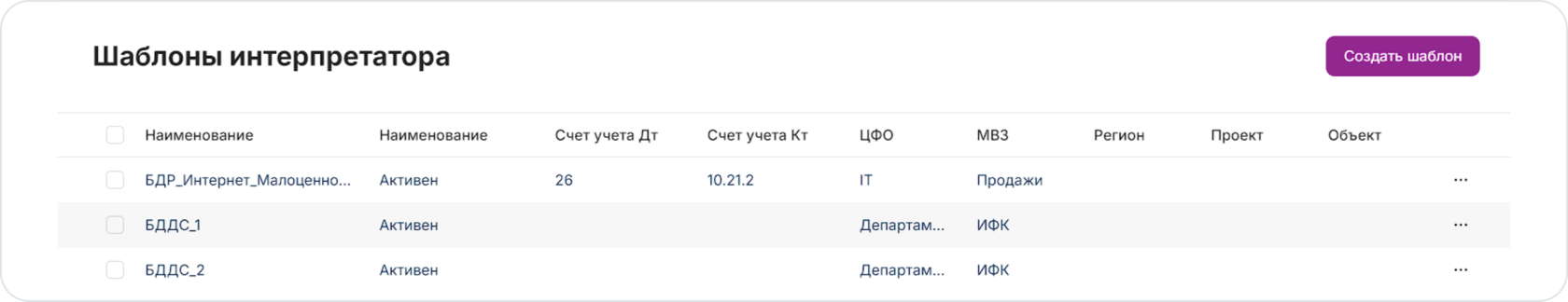 Для создания шаблона нажмите на кнопку Создать шаблон