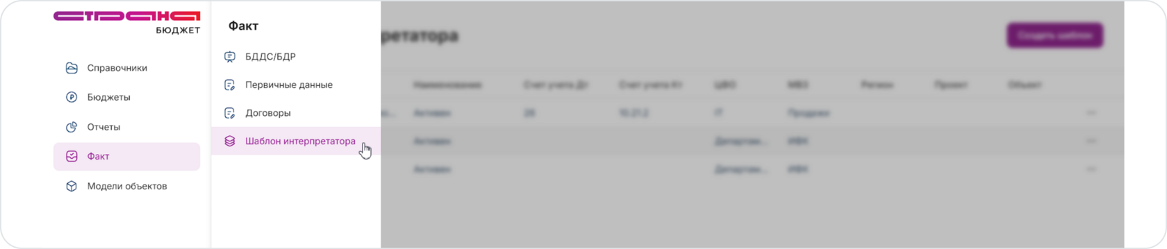 В левом меню необходимо выбрать пункт Факт , а дальше Шаблон интерпретатора